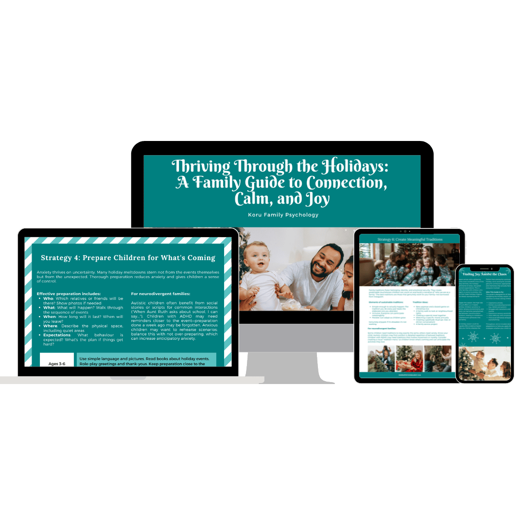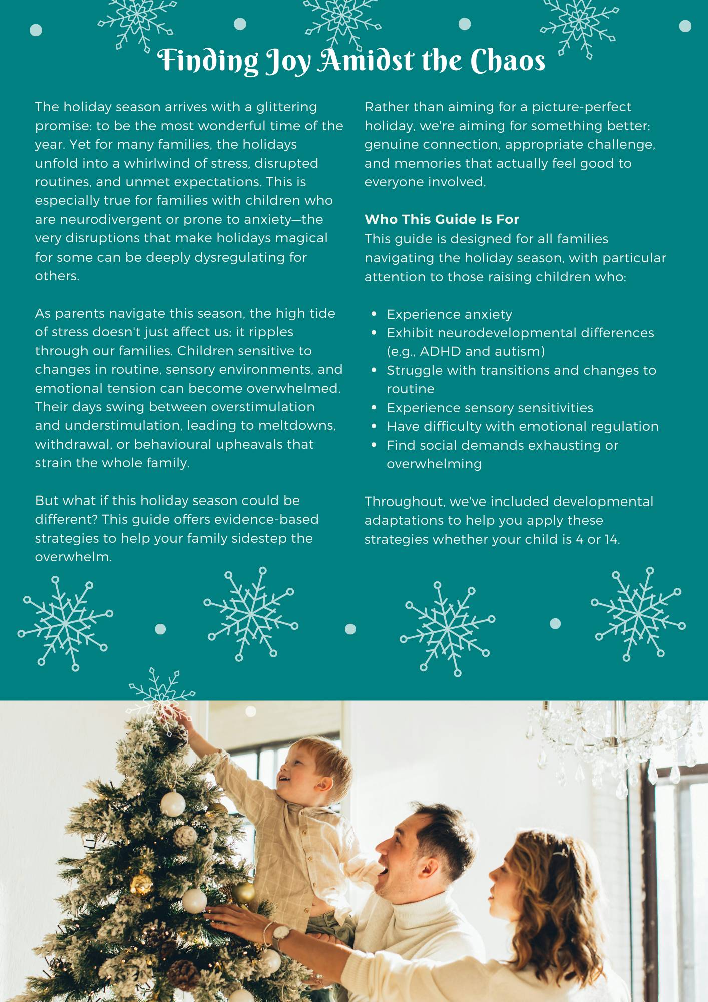 Inside this comprehensive Family Guide, you’ll find practical strategies to reduce sensory overload, prevent meltdowns, and protect the routines your children rely on. Designed with neurodivergent, anxious, and highly sensitive kids in mind, it gives you the roadmap to create holidays that actually work for your family.